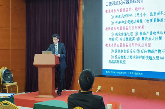 专业委员会主任委员、南京工业大学化学与分子工程学院朱红军教授致欢迎词。常州大学环境与安全学院院长张跃,江苏省农业农村厅农药总站研究员沈迎春、如东沿海经济开发区管委会副主任朱伟、上海晓明检测技术服务有限公司总经理倪珏萍、南京工大开元环保科技有限公司李伟敏、江苏东方赛光电有限公司龚卫东、南京农业大学张明智和夏青、南京工业大学朱红军等专家分别作了“微通道(连续流)反应器在化工生产中的应用”、“花卉主要病虫害和防控措施”、“如东沿海经济开发区发展历程与化工绿色转型发展”、“从企业角度浅谈农药创制的理解和实践――杀虫剂环丙氟虫胺创制历程”、“机器视觉在化工分层液相检测中的应用”、“氯链素类天然产物衍生物的设计合成和杀菌活性研究”、“环烯醚萜生物碱仿生合成及其骨架结构合成方法研究”、“钛硅分子筛应用于化学品清洁制造研究和应用进展”等学术报告。与会代表就江苏省农药绿色健康转型发展及学会今后工作作了深入讨论交流。