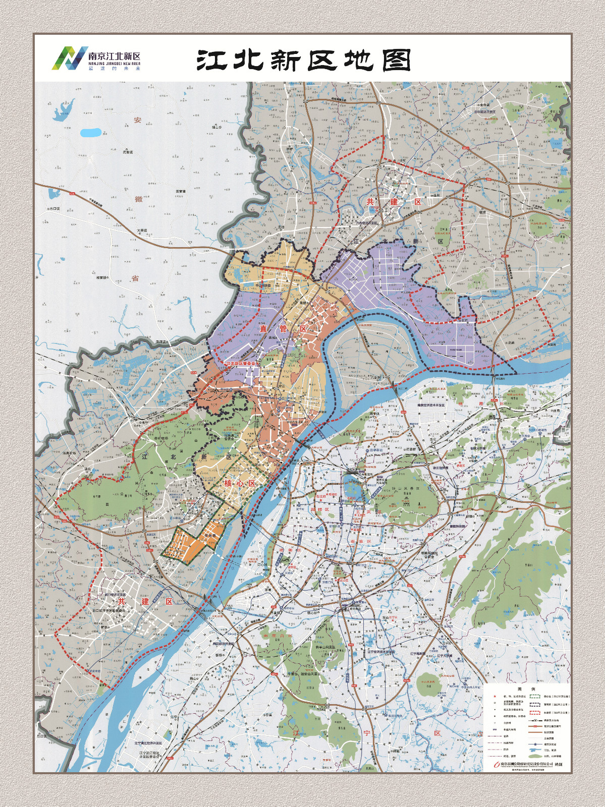 南京江北新区,2015年6月27日由国务院批复设立,是全国第13个、江苏省首个国家级新区。根据国务院批复,新区战略定位是“三区一平台”,即逐步建设成为自主创新先导区、新型城镇化示范区、长三角地区现代产业集聚区、长江经济带对外开放合作重要平台。新区位于江苏省南京市长江以北,包括浦口区、六合区和栖霞区八卦洲街道,总人口约250万,规划面积788平方公里;其中,直管区管辖7个街道,共386平方公里。